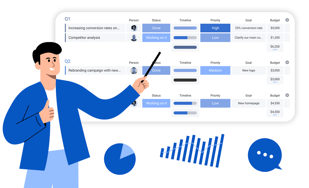 Задача, стратегия, бюджет — все это мы согласуем и утвердим до начала сотрудничества. Благодаря фидбеку от специалистов и проект-менеджера вы всегда будете знать, насколько успешно происходит продвижение сайта. Мы формируем подробные отчеты с указанием соотношения часов и работы (план/факт), поэтому вы будете знать, на что идут средства.
